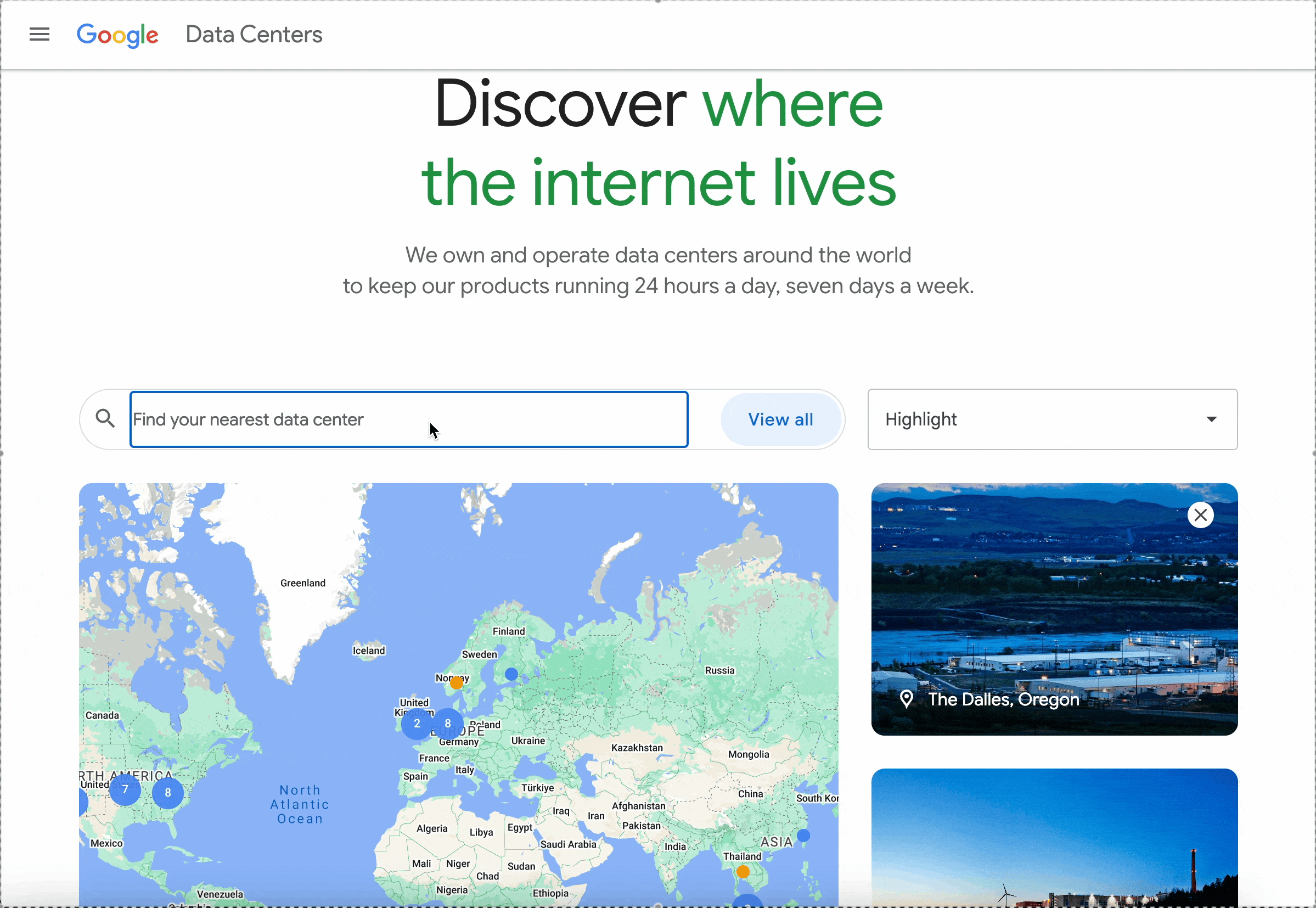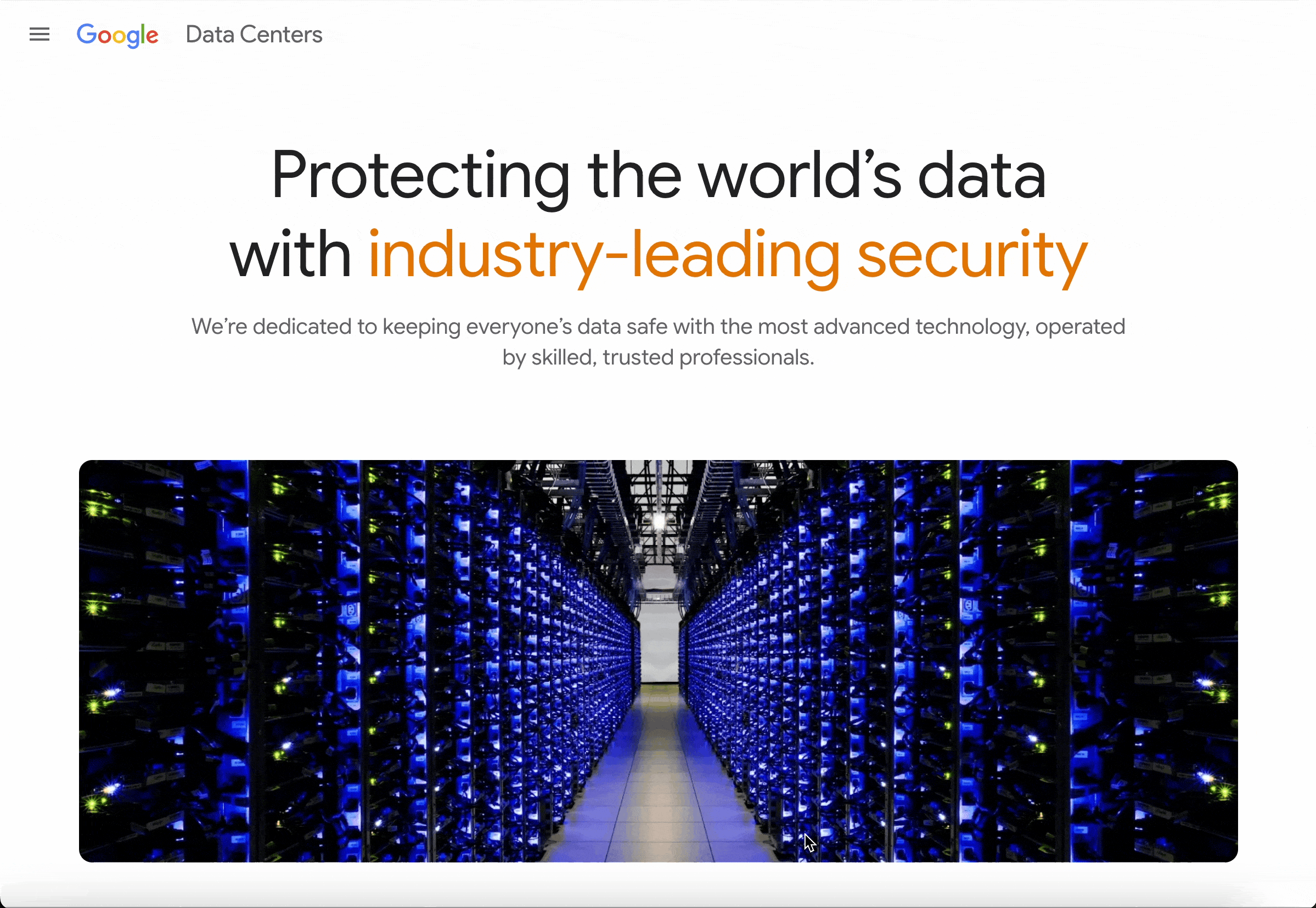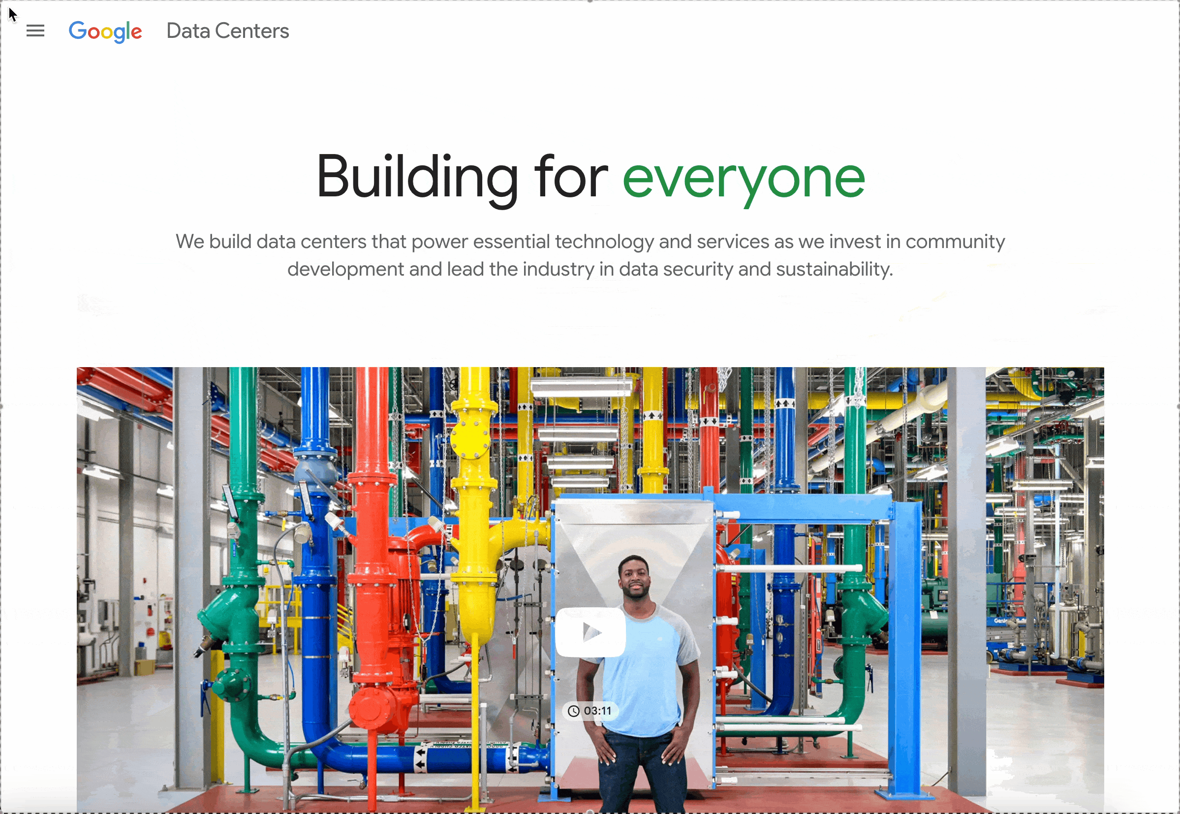Outcome: A redesigned website serving as a central hub for messaging, stats, and multimedia content about Google’s energy efficiency, water stewardship, and grid resilience.